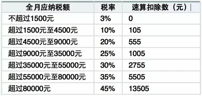4、税率:由3%上涨到45%,有7个等级,分别与7个不同区间的应纳税额对应